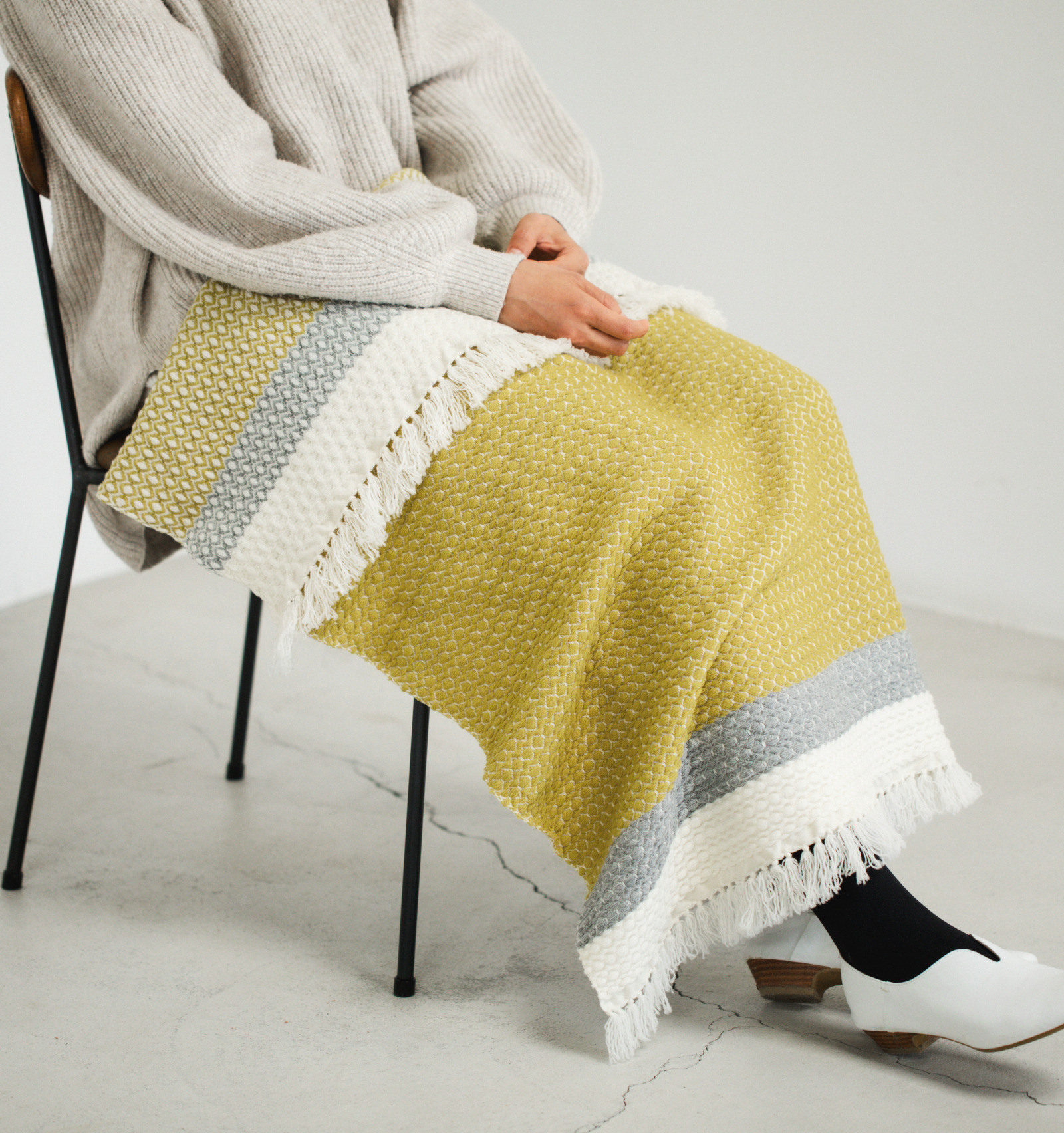 ウールブランケットショール ドットパターン KAWARIシリーズ 着用画像
