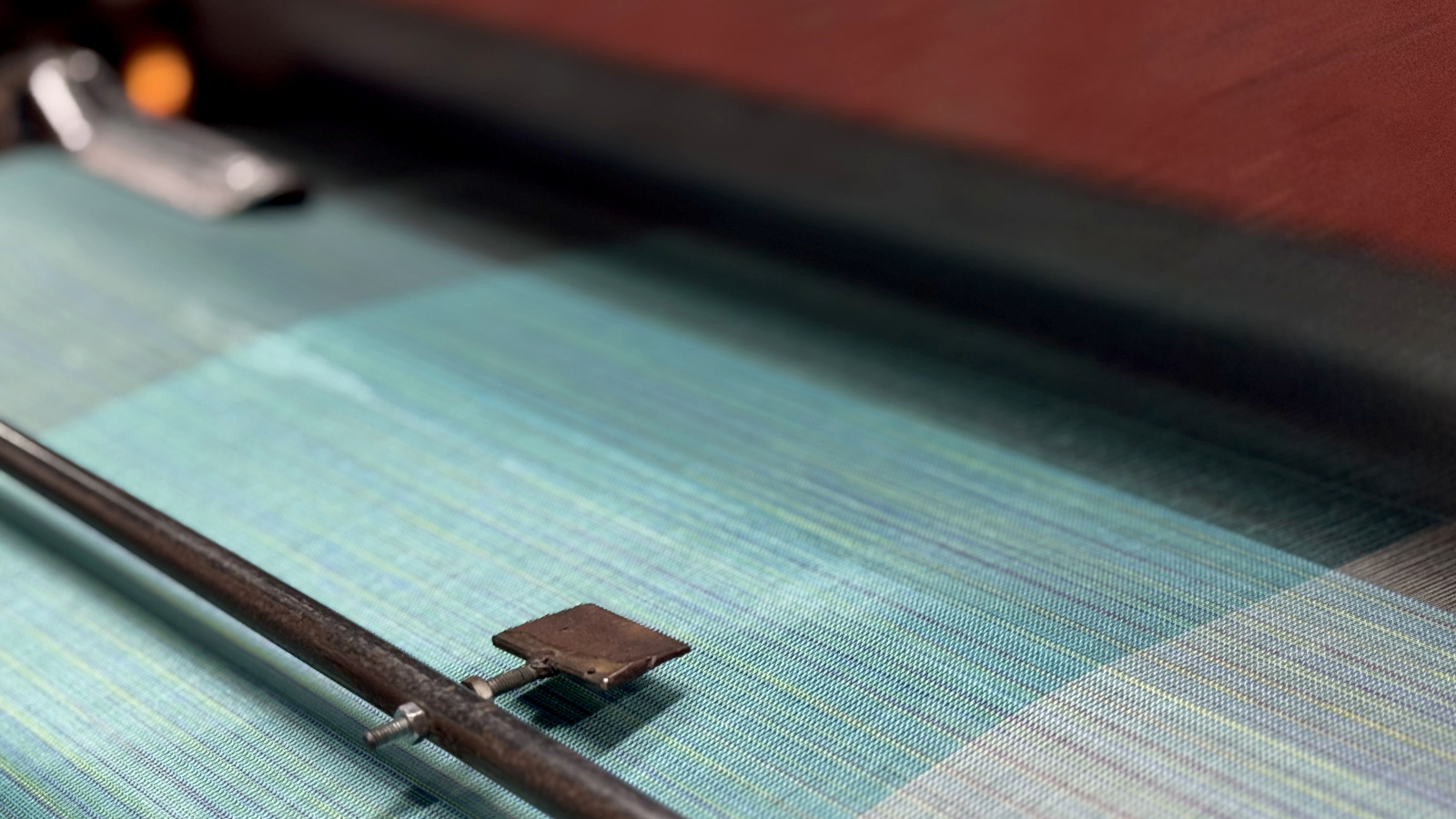 シャトル織機で織る様子の画像