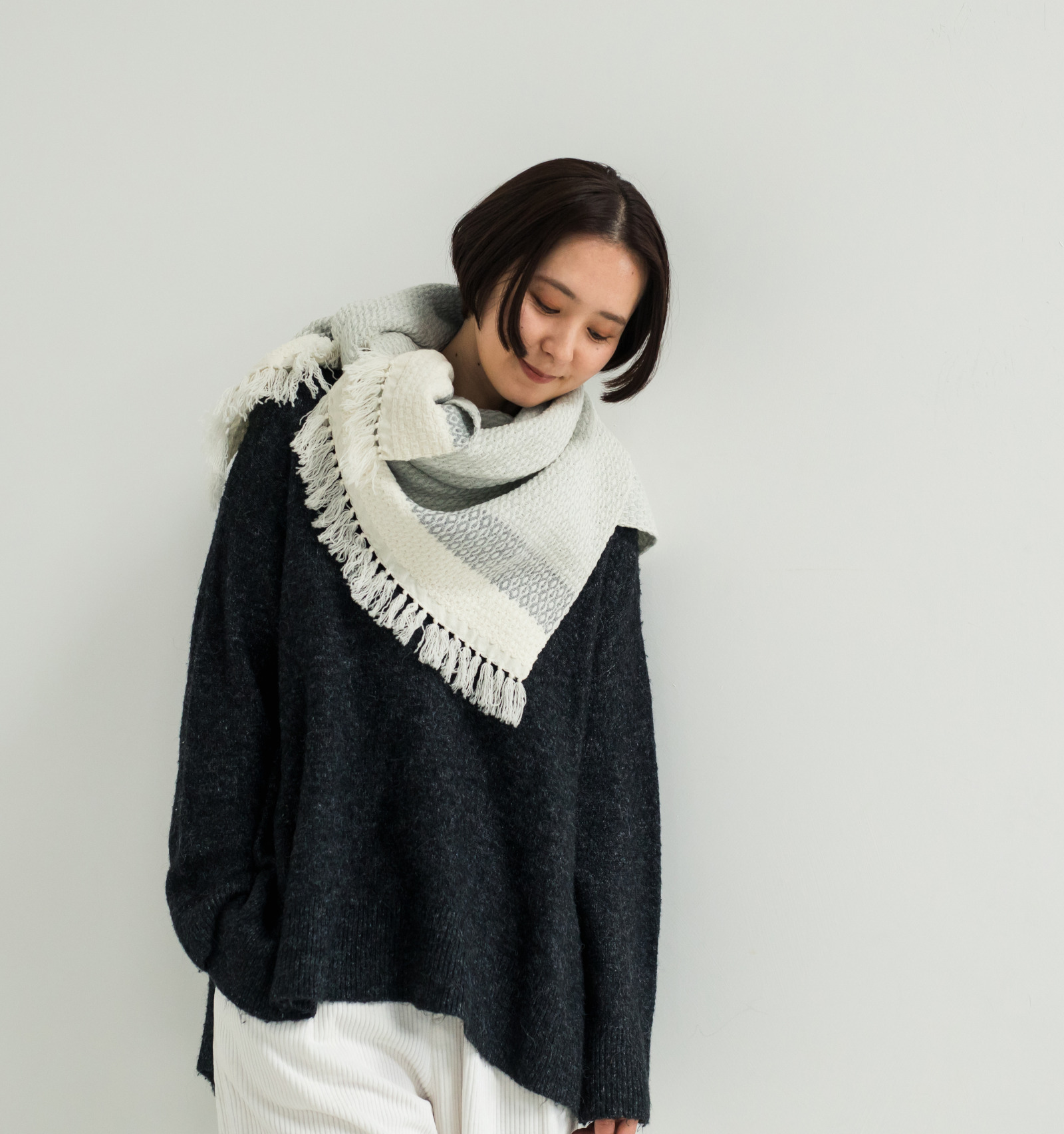 ウールブランケットショール グラスパターン KAWARIシリーズ 着用画像
