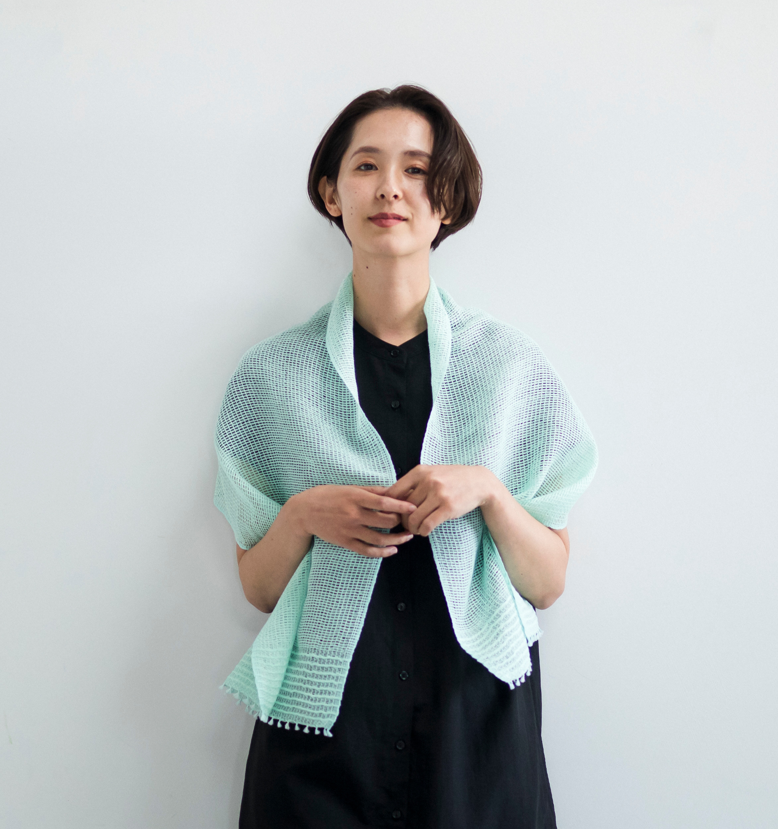 和紙&オーガニックコットンショートマフラー ミントカラー 着用画像