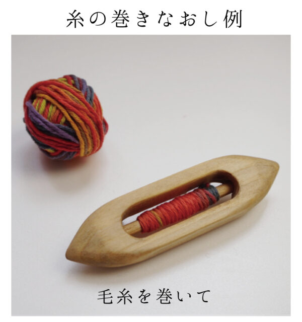 機織りで使うシャトルの中には、巻かれたよこ糸が収まっています。