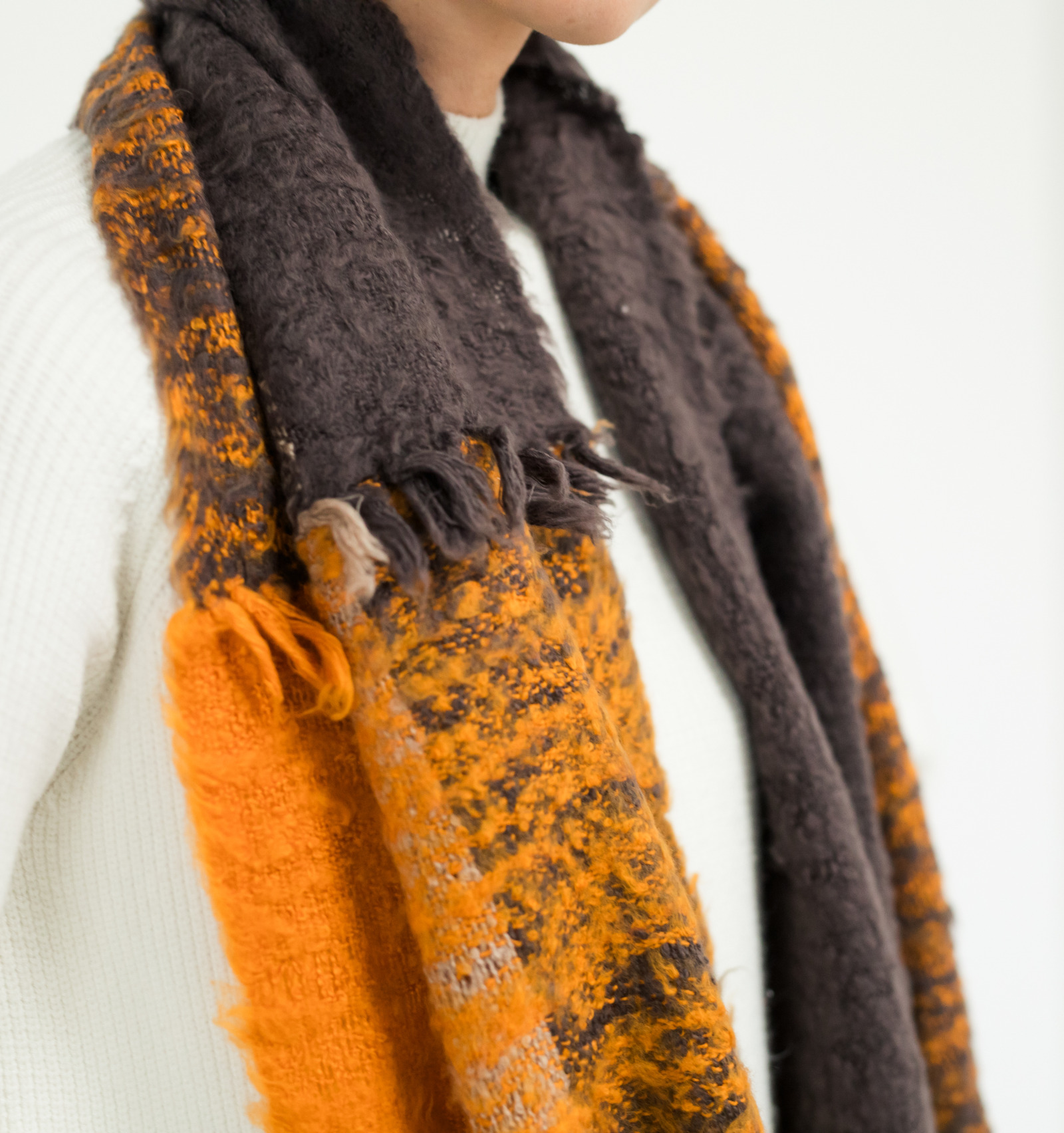 このスヌードには、古くからヨーロッパで高級起毛製品に使われてきた「チーゼル」という植物を採用。