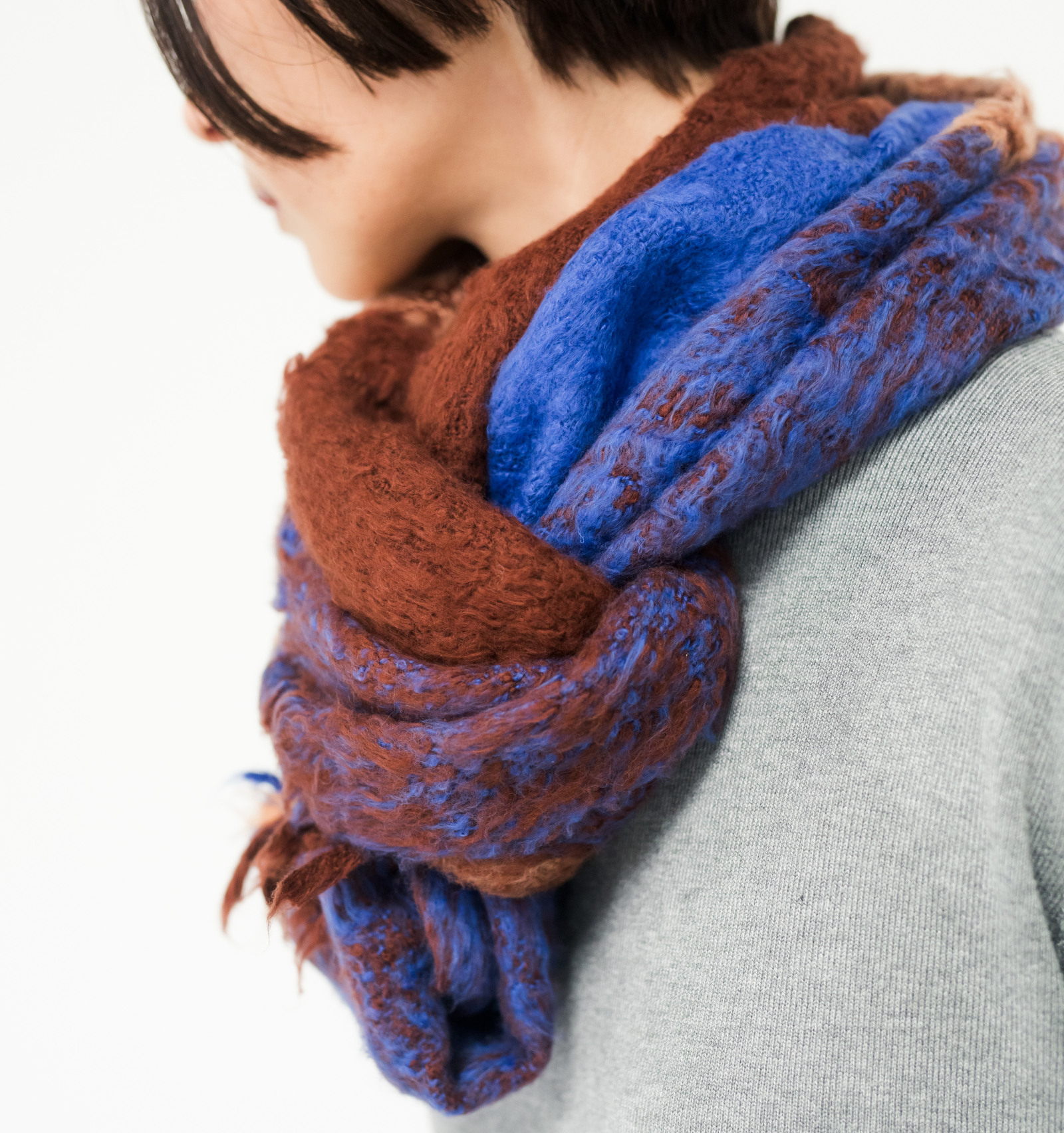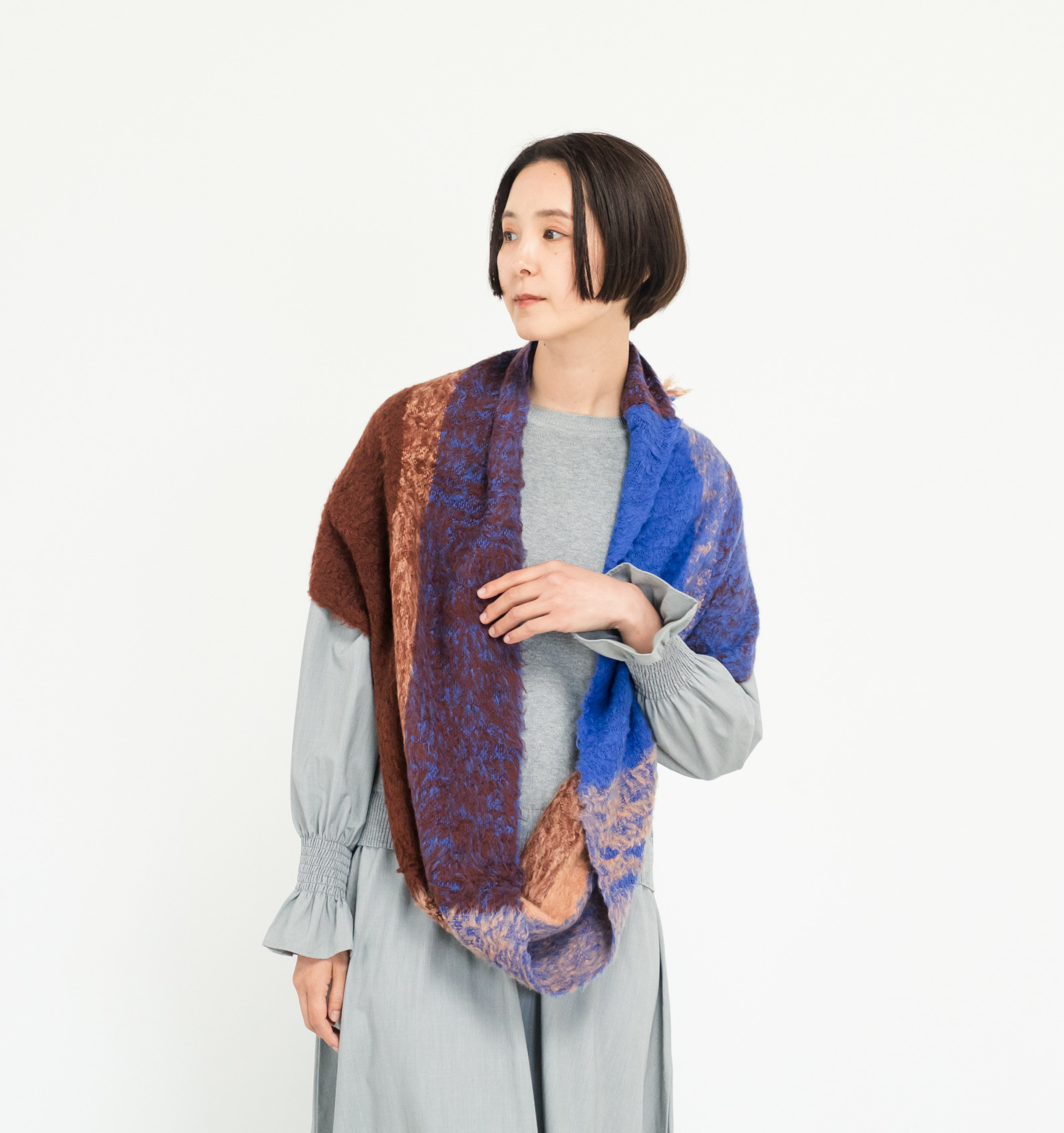 大きく巻いても、コンパクトにまとめても、ふんわりと形が決まり、日常づかいからお出かけまで、軽やかに馴染む心地よさです。