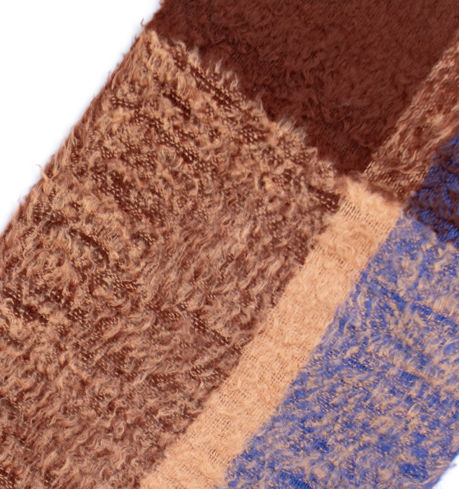大きなブロックごとに色の組み合わせを変えて織り上げており、
