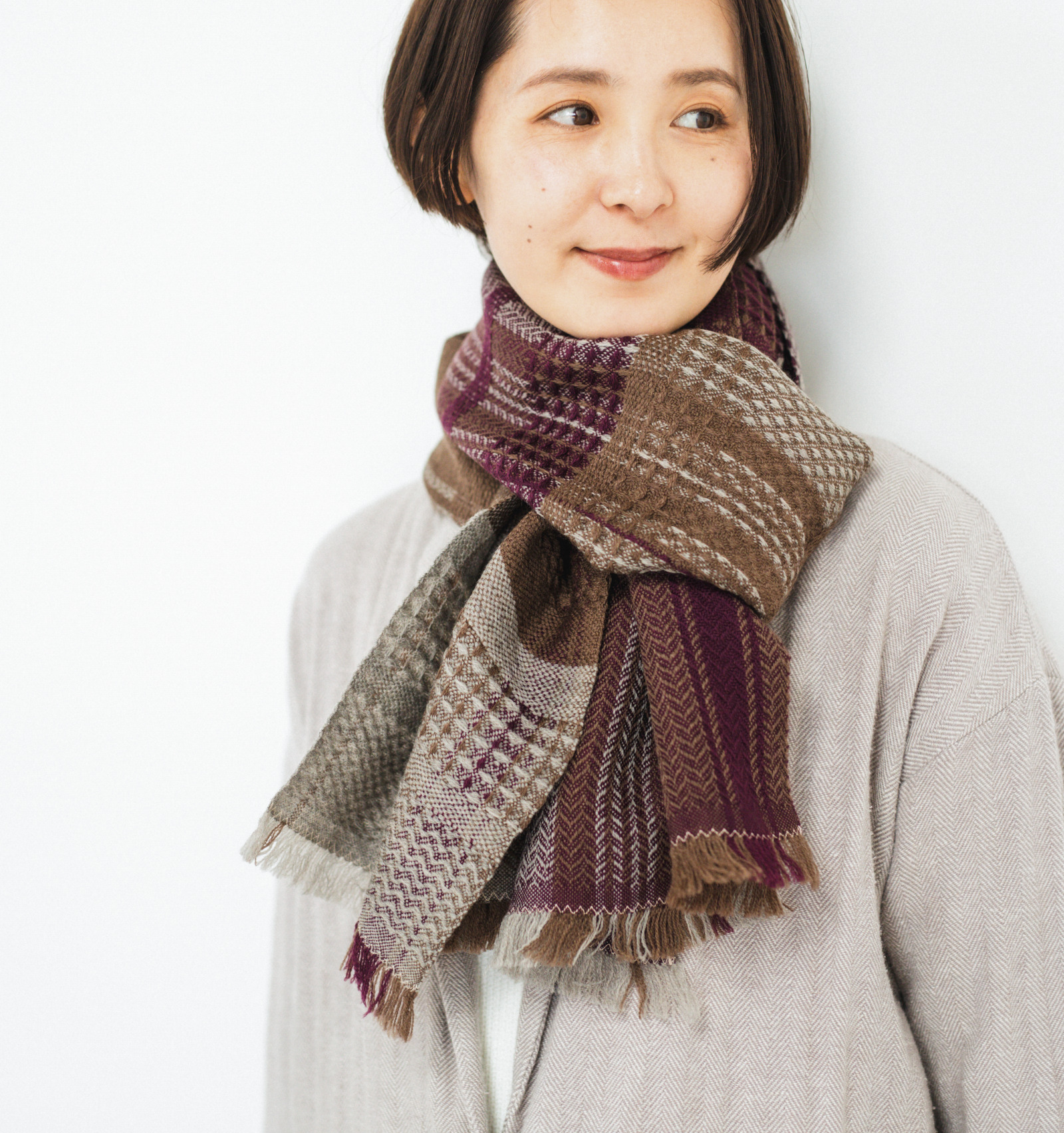 【11/18 NEW】ウール かわり織りマフラー zero バーガンディーⅡ