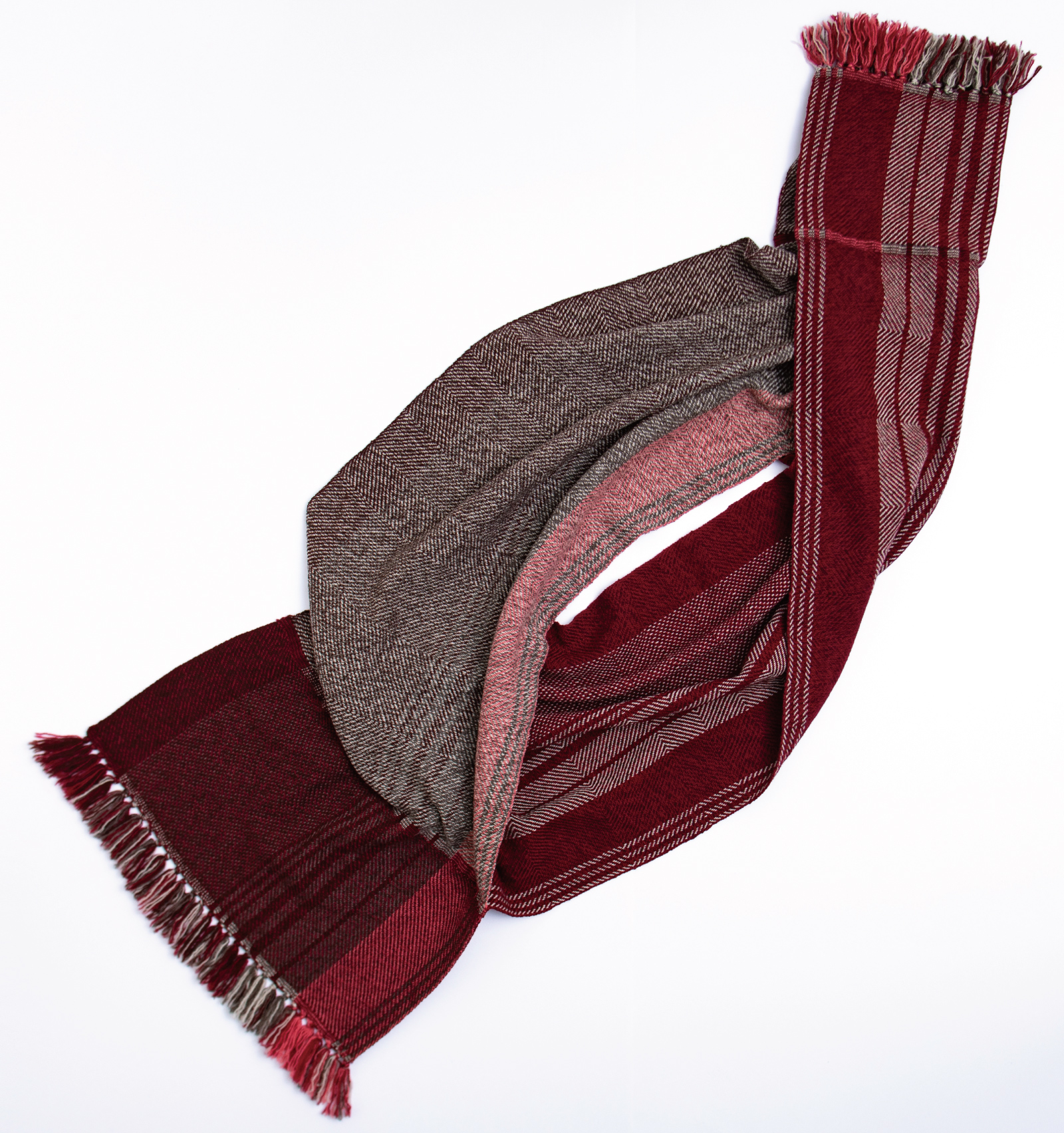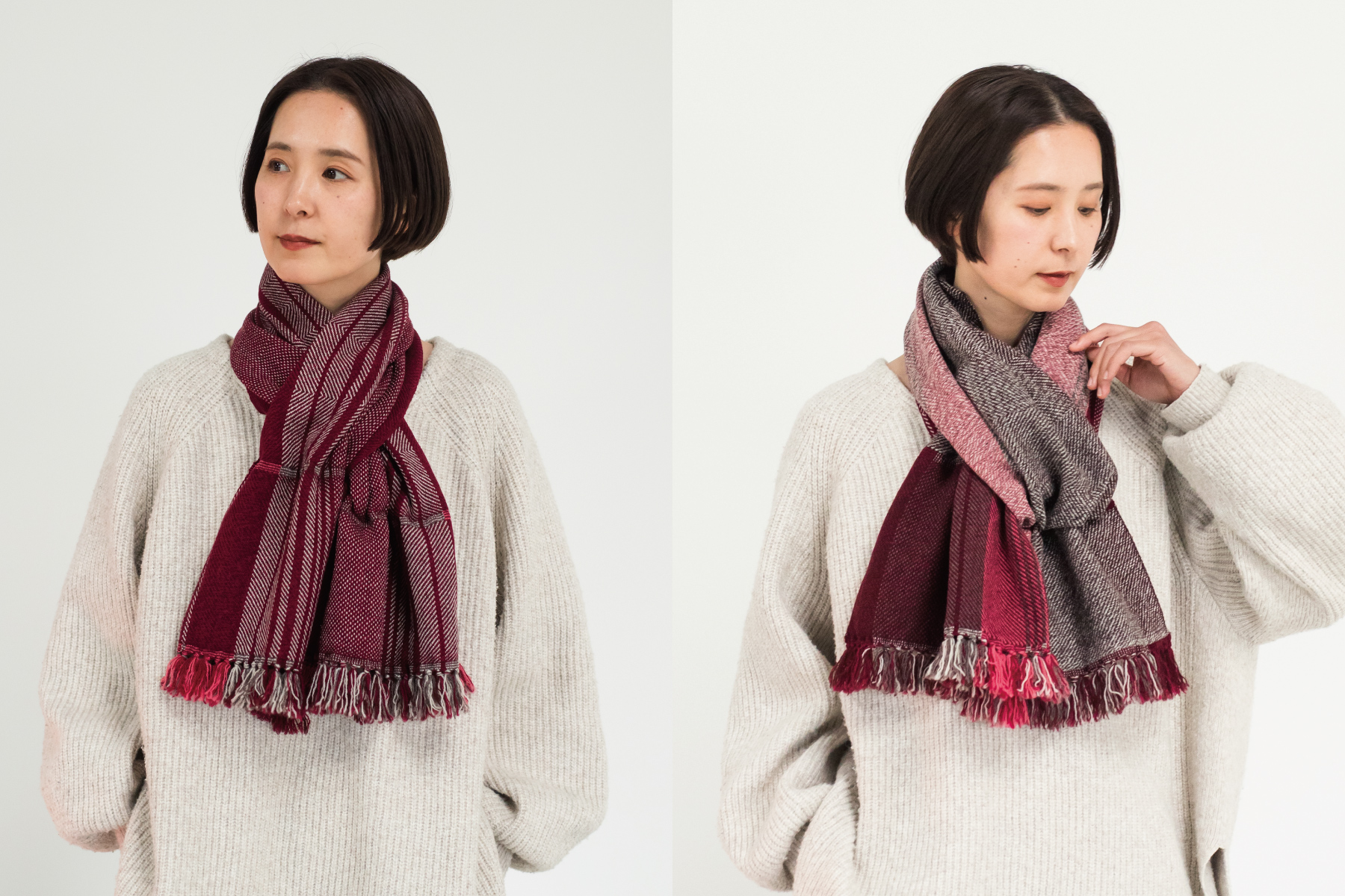 綾織りならではの密度と軽やかな柔らかさ、そして裏表なくまとえるリバーシブルの色の奥行き。
