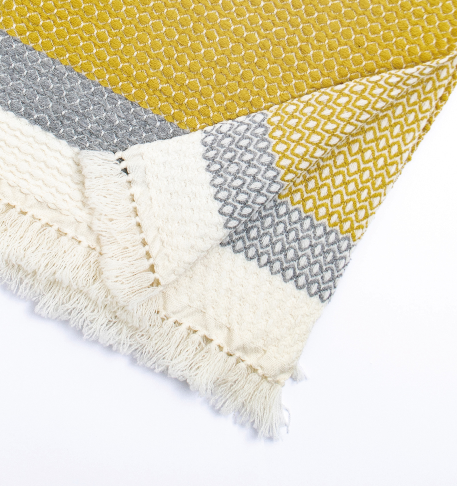 両端のフリンジは、ひとつひとつ丁寧に手作業で結んだもの。