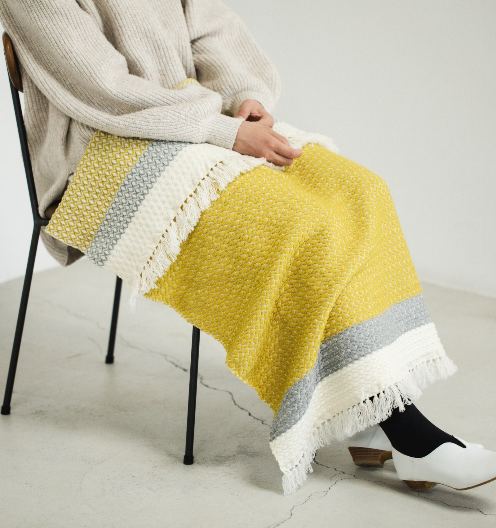 ひざ掛けにも羽織りにも使えるほどよいサイズ感で、椅子に掛けておくだけでも空間にやさしい彩りを添えてくれます。