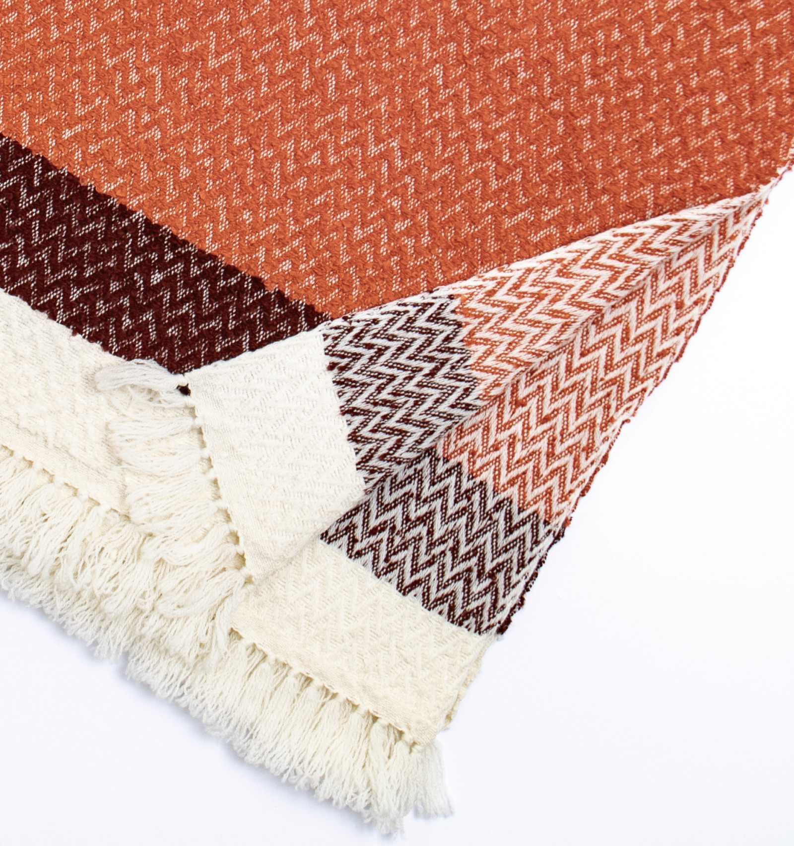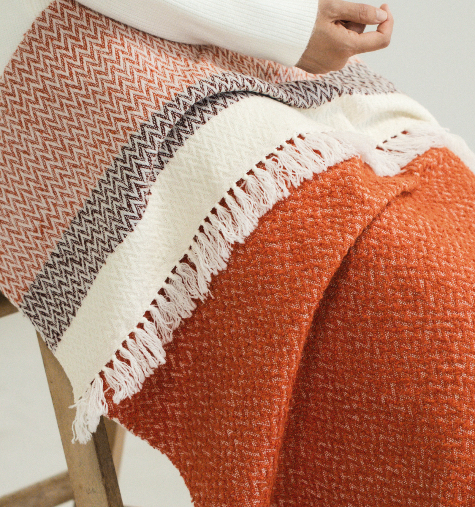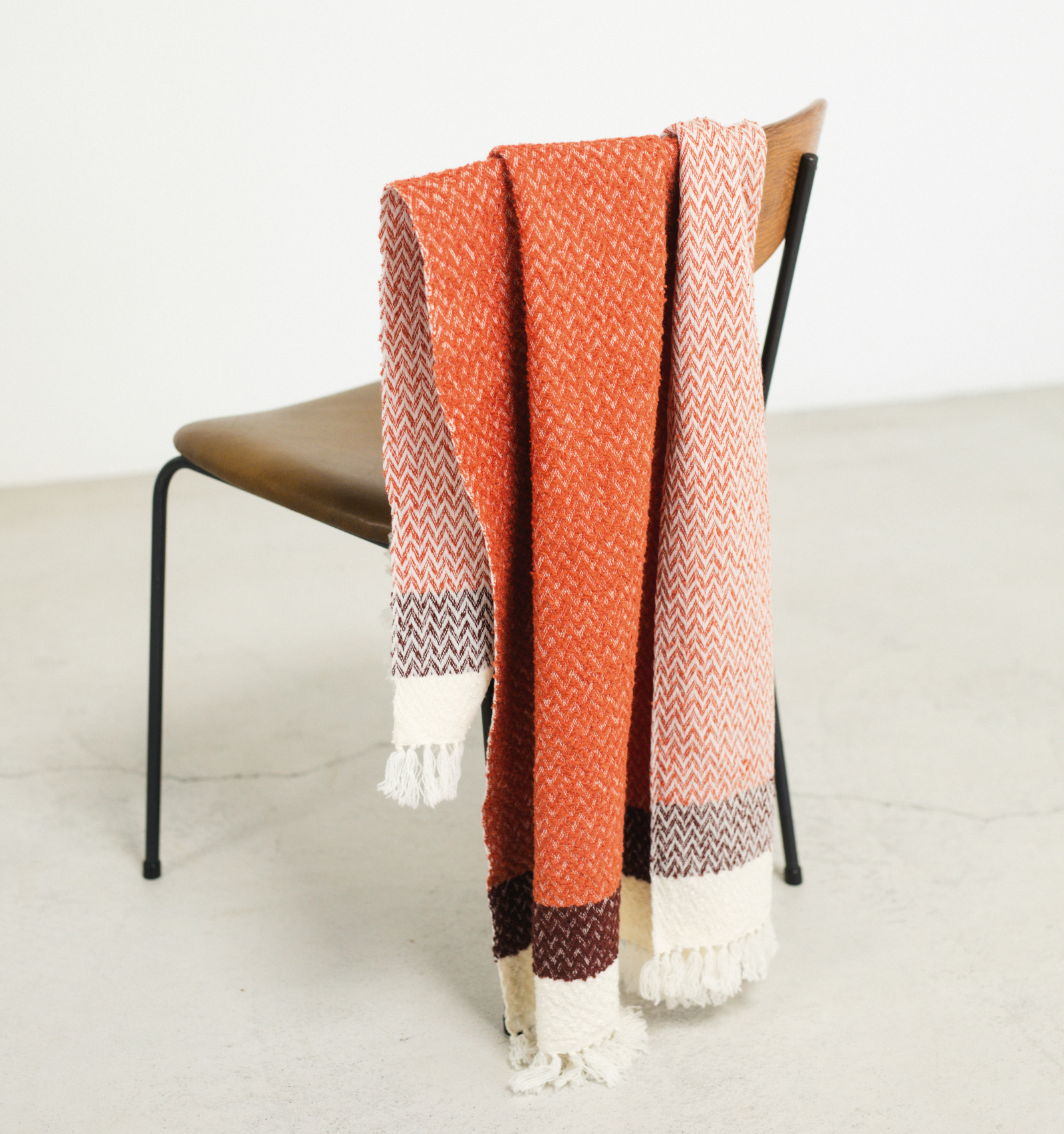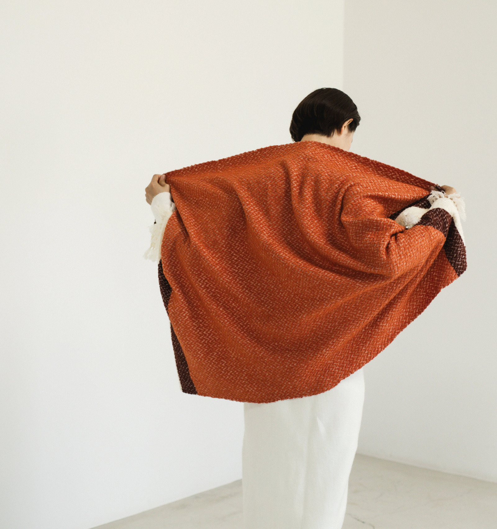 ループヤーンのやさしい肌ざわり。リバーシブルで楽しむヘリンボーン柄のブランケットショール