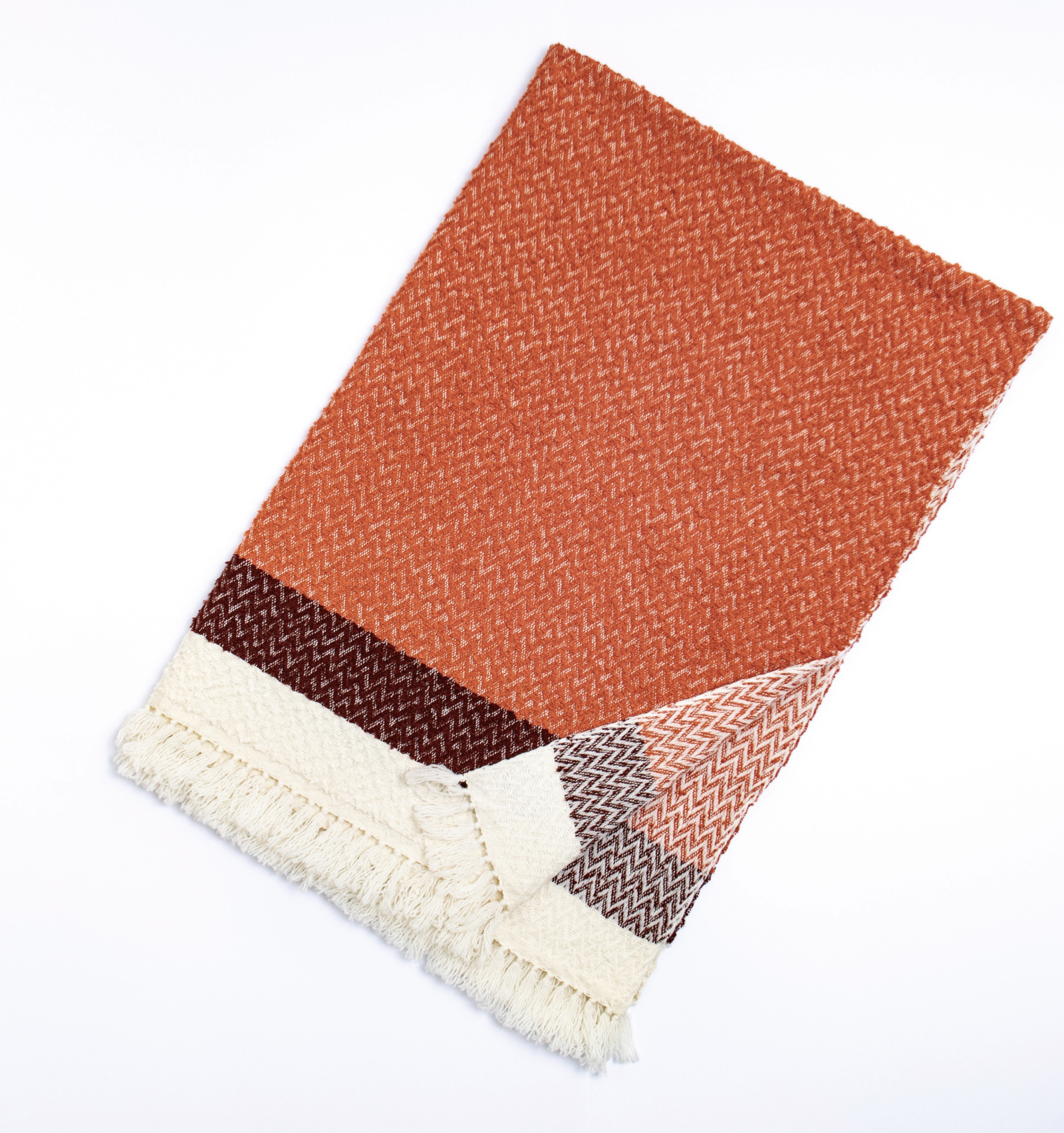 ブランケットショール ヘリンボーン [ウールコットン] オレンジ