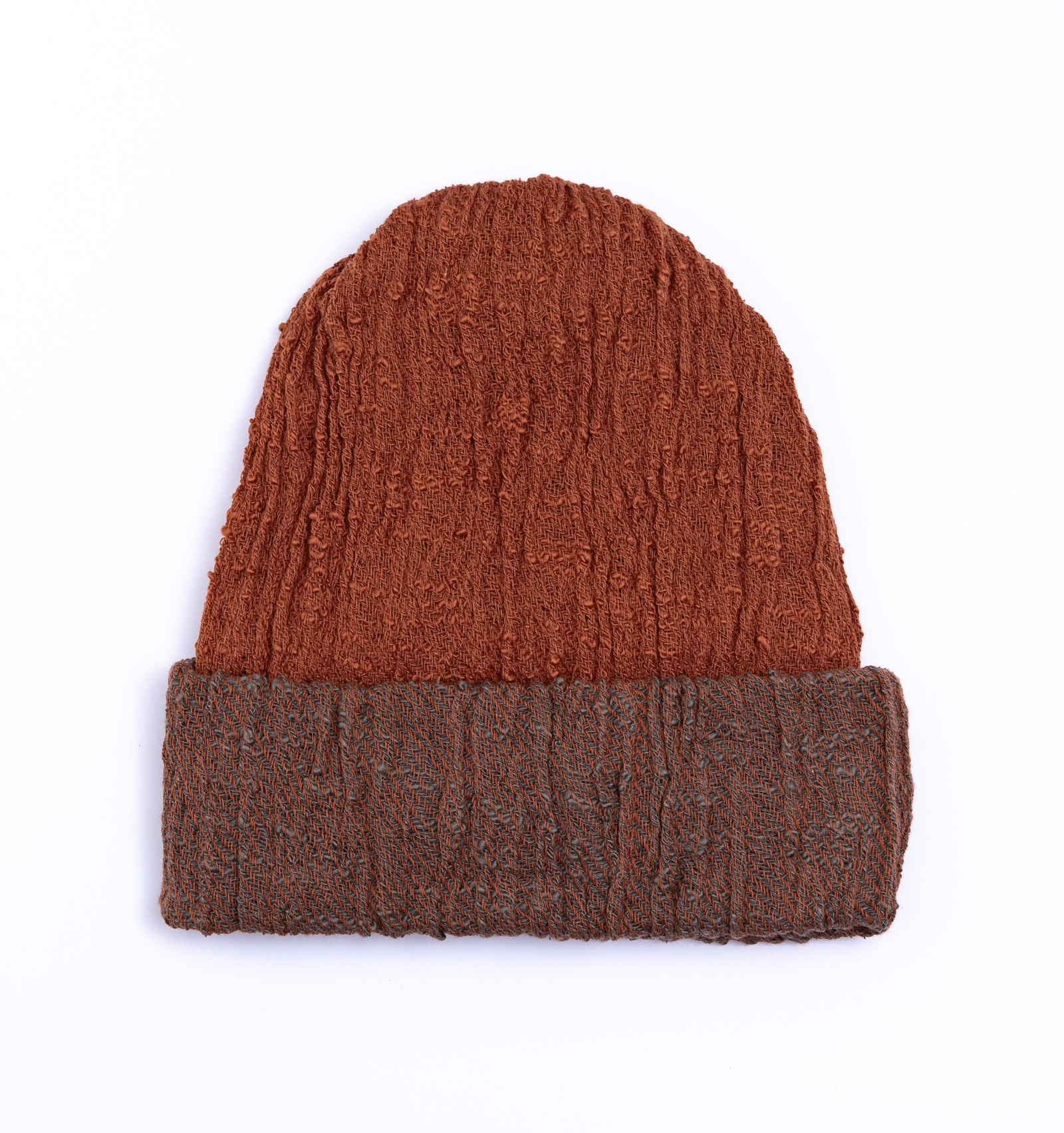 内側で折り返すことで、一色の帽子に様変わり。