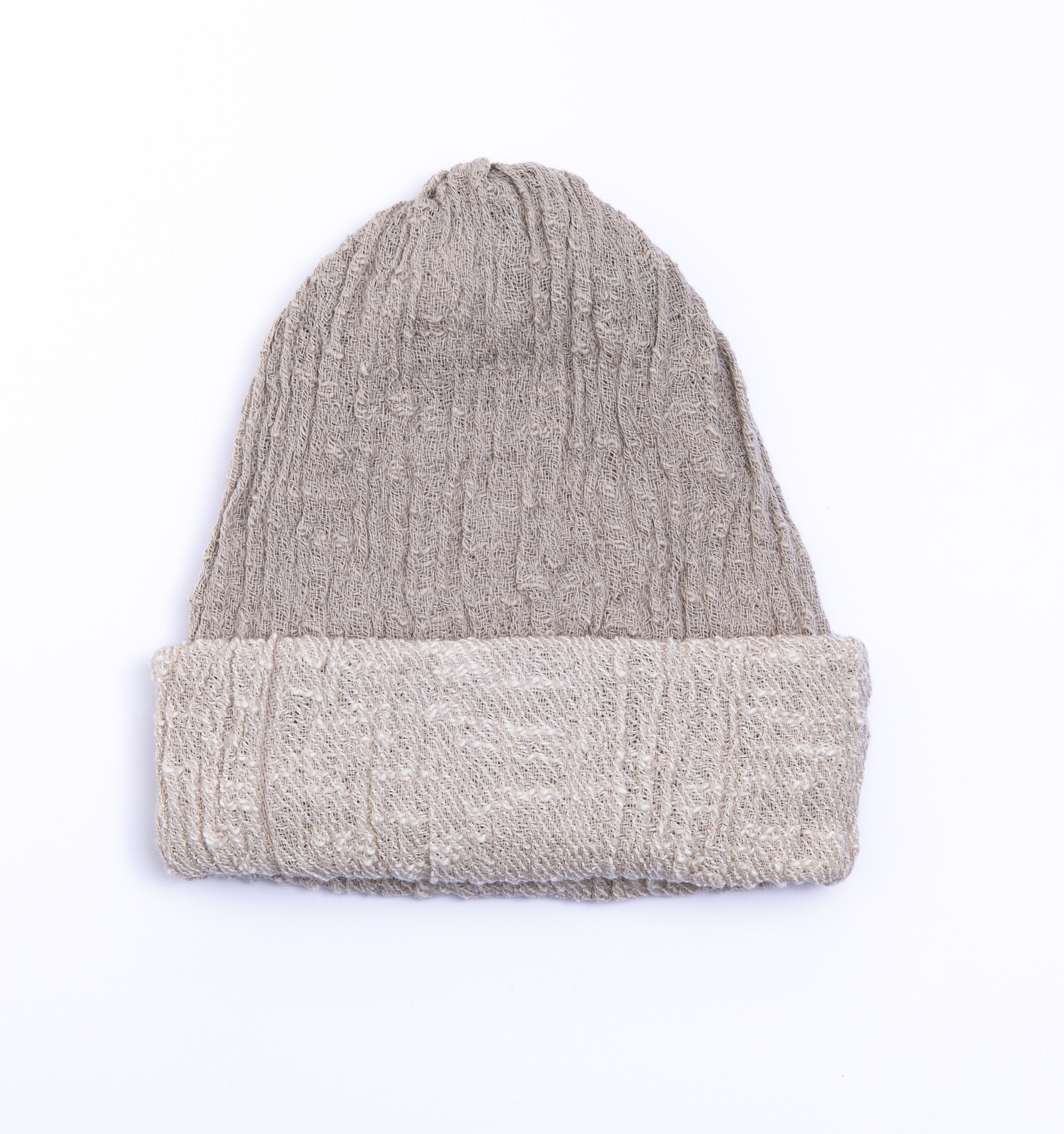 内側で折り返すことで、一色の帽子に様変わり。