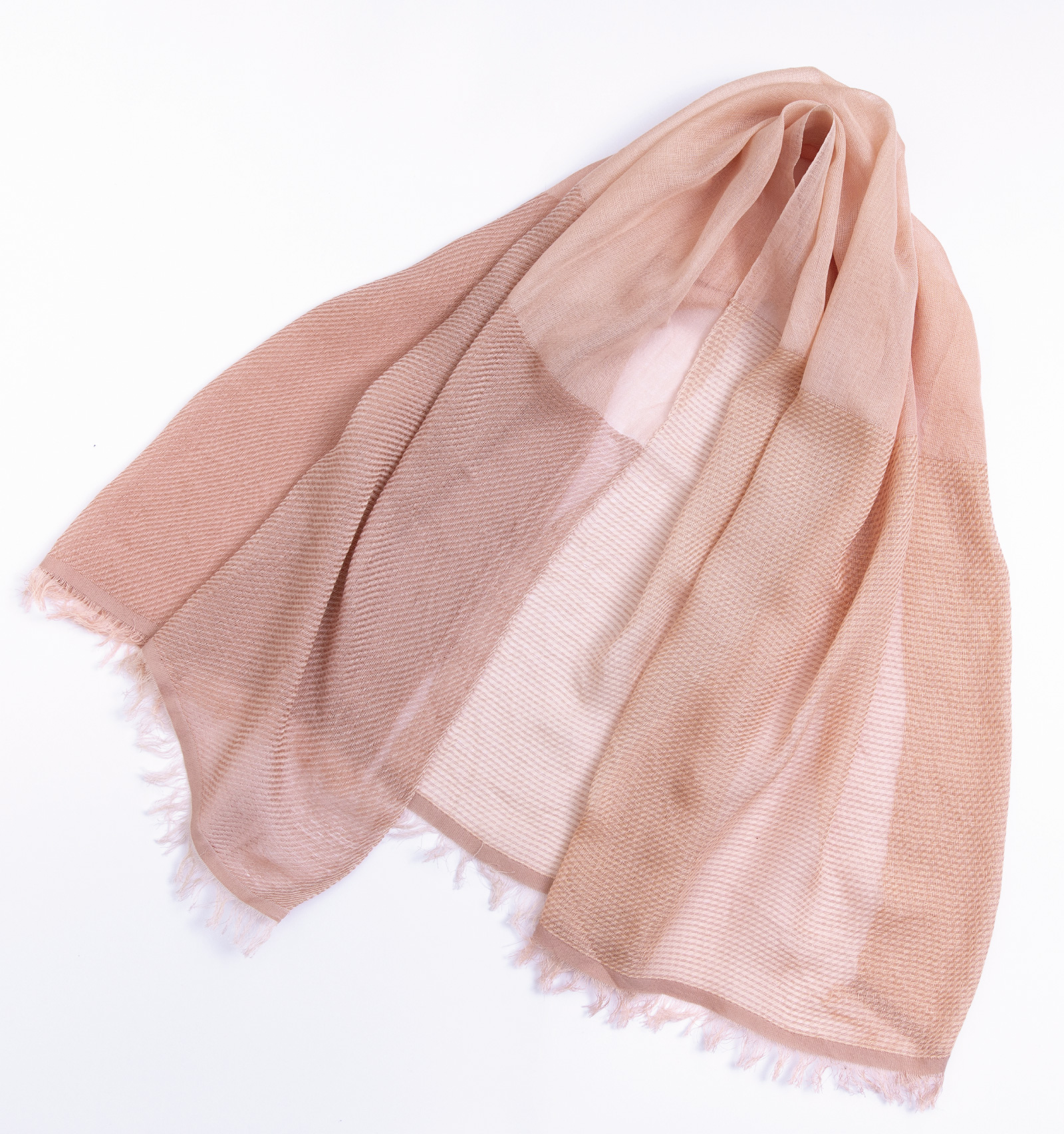 このショールには、やわらかな色のグラデーションが描かれています。