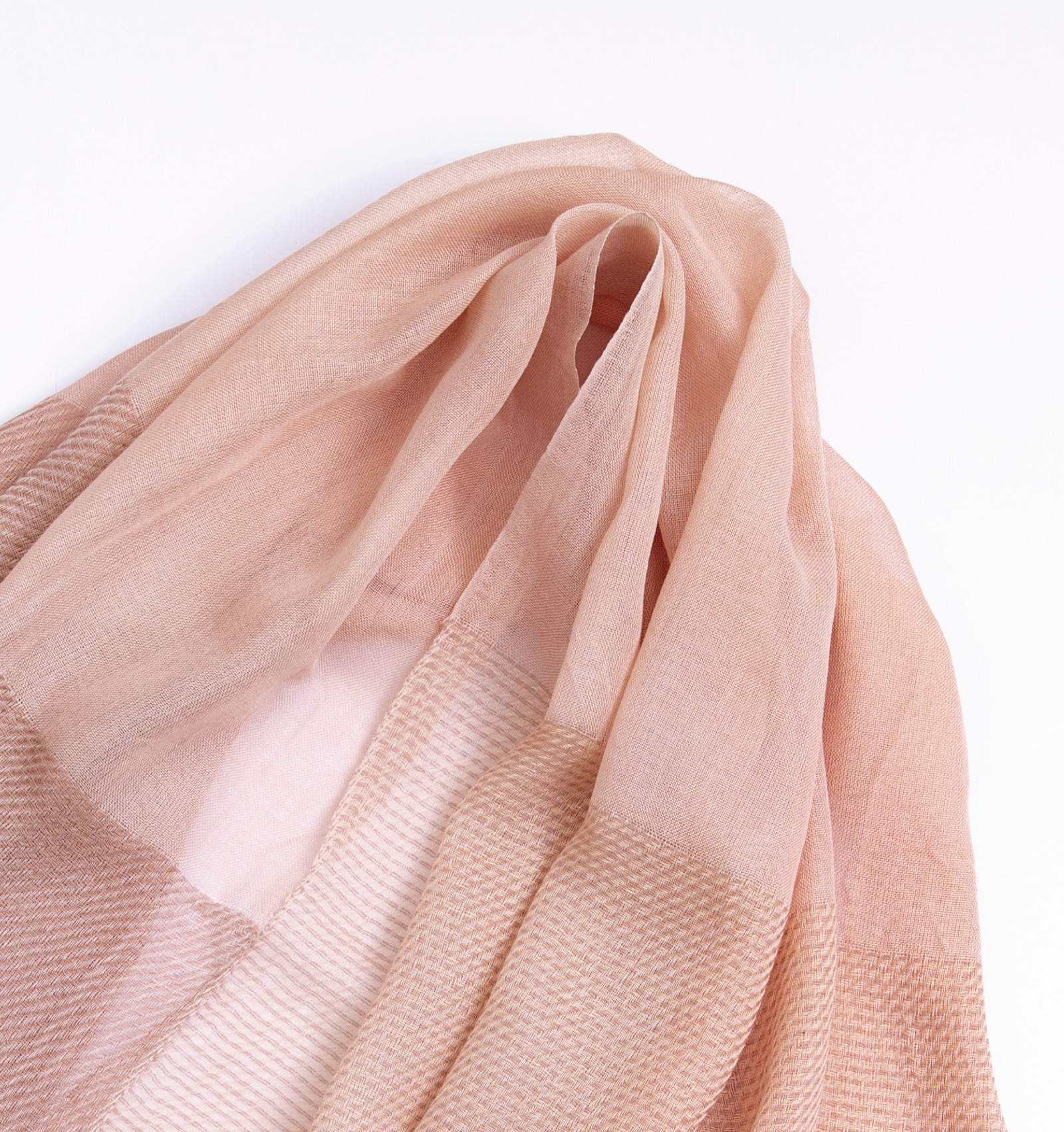 細やかなヘリンボーンのような織り模様がほんのり浮かび、やわらかな透け感とともに布にさりげない表情を添えています。