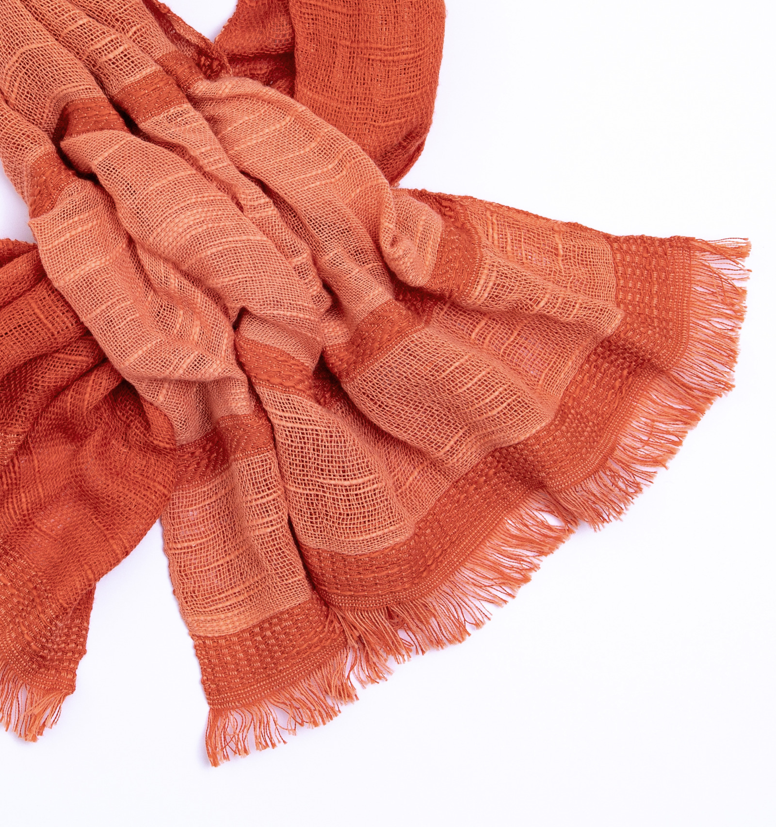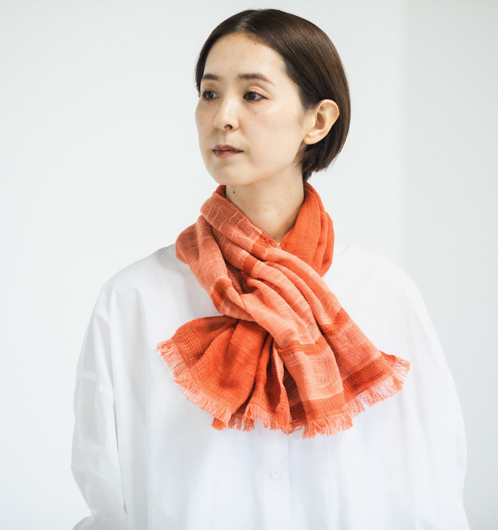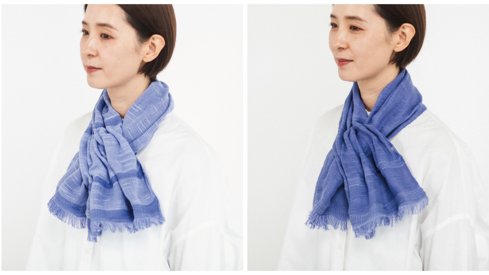 表と裏で異なる色合いや織りの表情が現れるリバーシブル。巻いたときに自然と色が重なり、奥行きのある印象が生まれます。