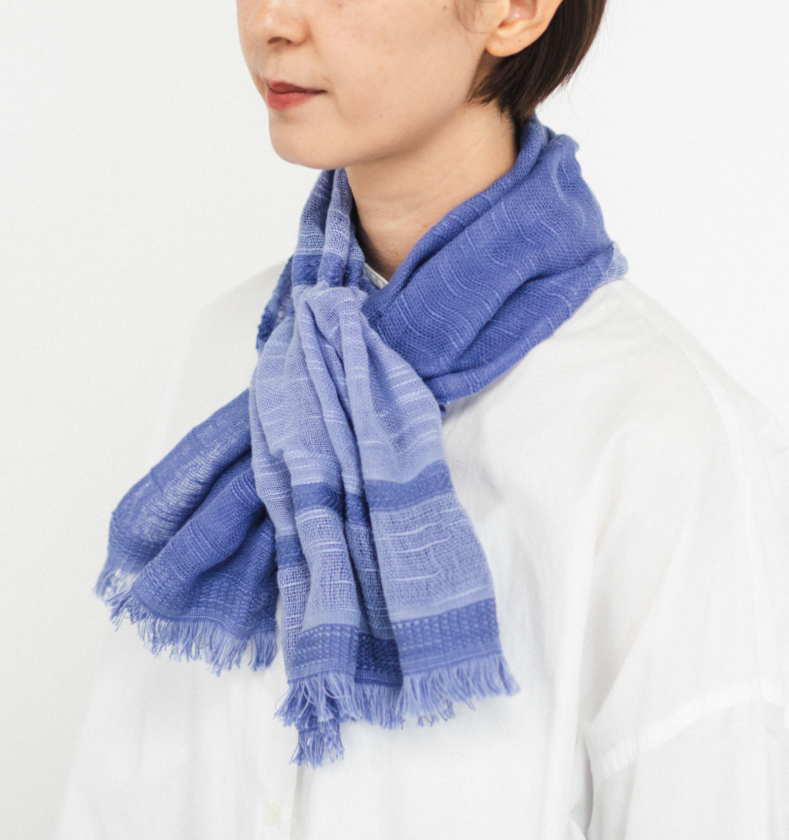表と裏で異なる色合いや織りの表情が現れるリバーシブル。巻いたときに自然と色が重なり、奥行きのある印象が生まれます。