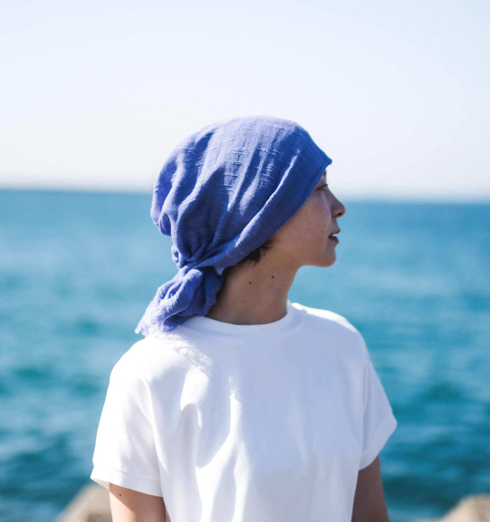 やわらかなコットンの生地が頭にふんわりと沿い、締めつけすぎない軽やかな着け心地に。
