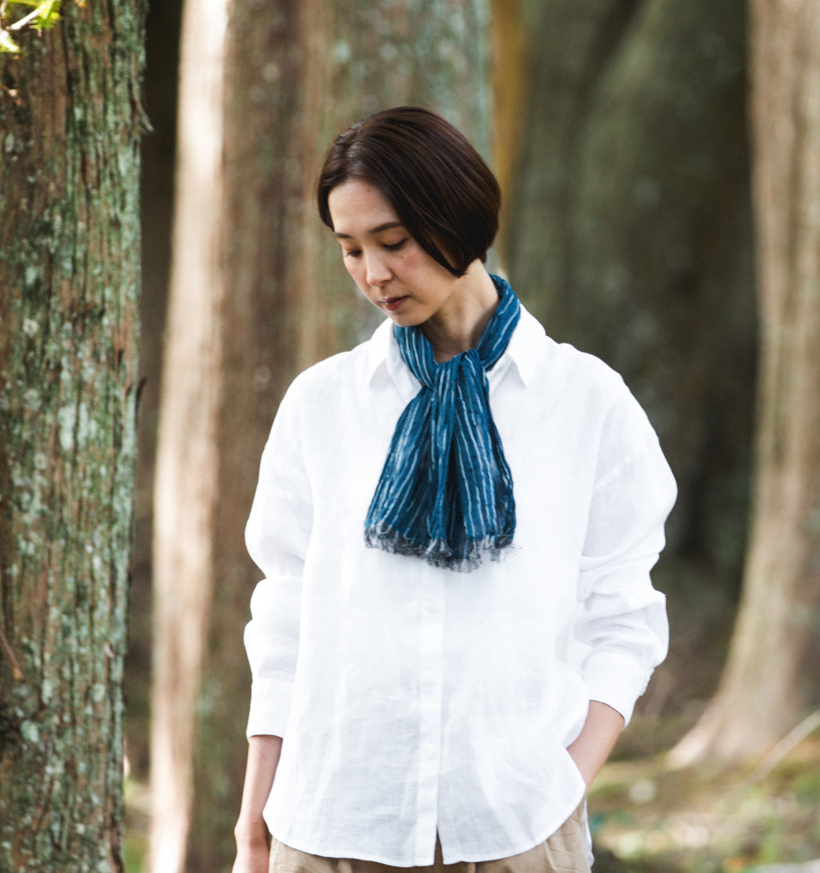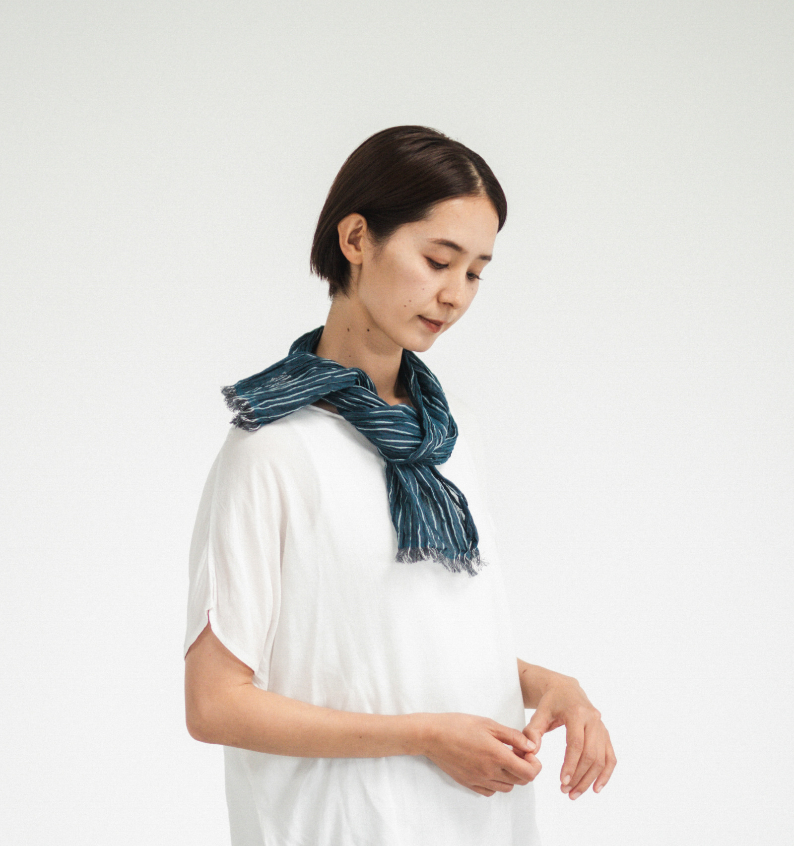 日常の中で親しまれてきた手ぬぐいの軽やかさをそのままに、首元に巻いたときの心地よさや、布の表情の豊かさが感じられるように仕立てられています。